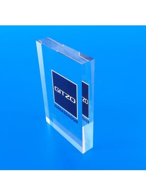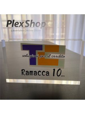 Fermacarte in plexiglass trasparente incolore con bordi diamantati perfettamente lucidi e brillanti, personalizzati con stampa a colori o marcatura a laser indelebile color bianco/grigio satinato. Se desideri una misura particolare, la possiamo realizzare!